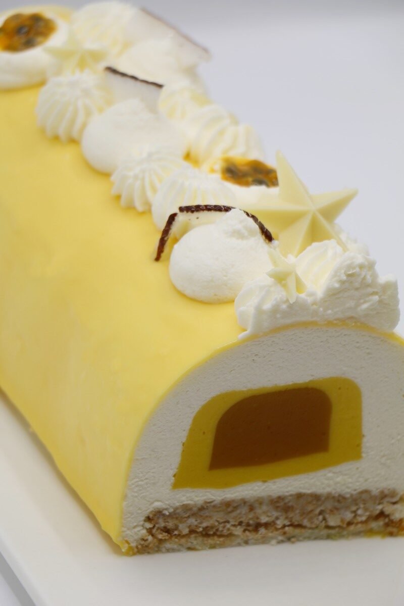 Une bûche légère et fruitée pour terminer en beauté votre repas de fêtes. Du chocolat blanc et de la noix de coco pour la douceur. De la mangue, du fruit de la passion et un petit zeste de citron vert pour le côté acidulé qu’on aime bien !